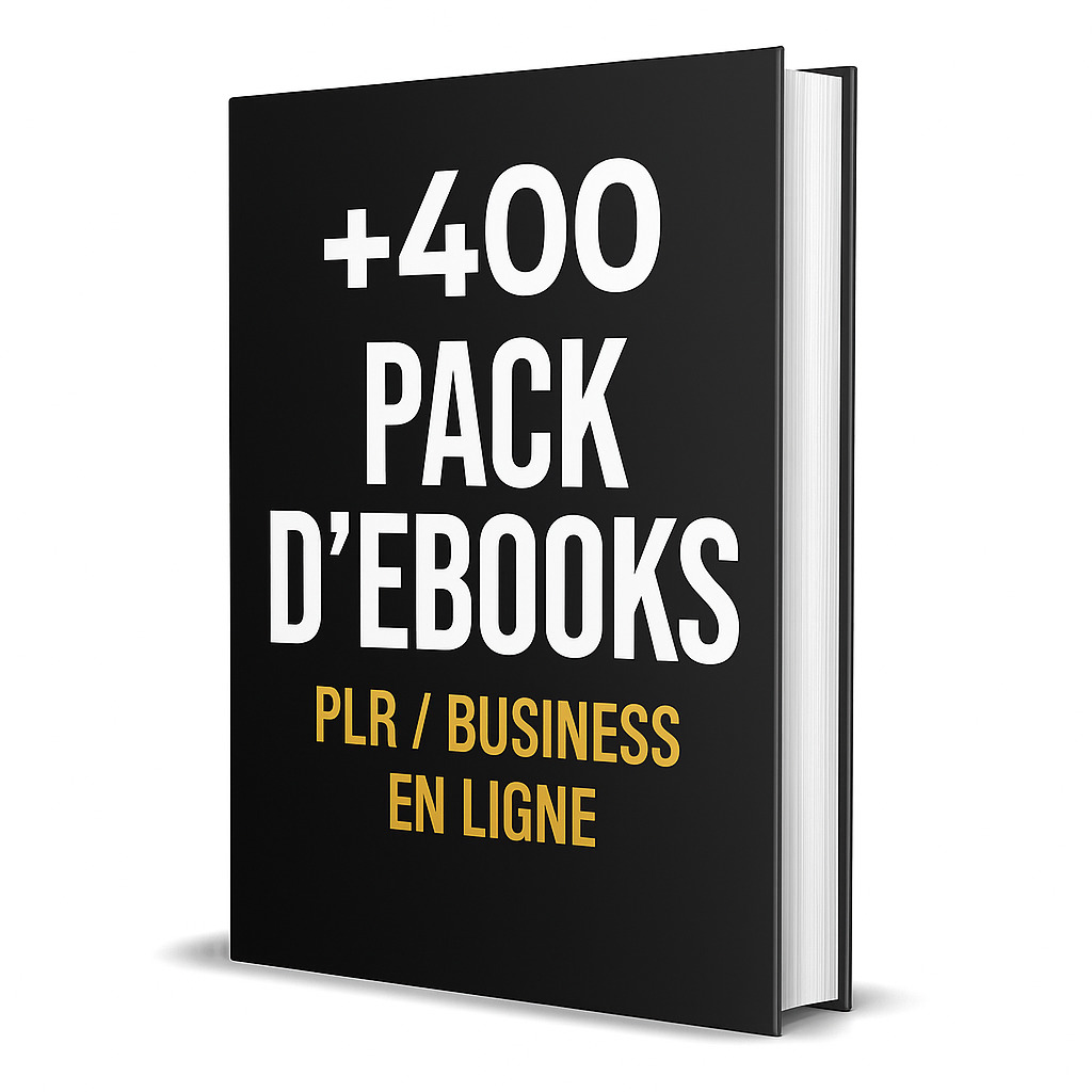 Découvrez le pack ultime pour lancer, développer et automatiser votre business en ligne ! Ce méga pack contient plus de 400 eBooks PLR (Private Label Rights), soigneusement sélectionnés dans les domaines les plus rentables du digital : marketing en ligne, développement personnel, santé, finances, entrepreneuriat, productivité, réseaux sociaux, et bien plus encore.