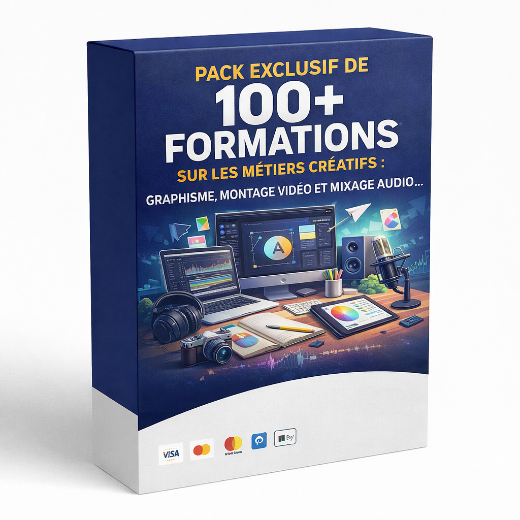 Découvrez le Pack Exclusif de 100+ Formations dédiées aux métiers créatifs — votre passerelle complète vers une carrière moderne et polyvalente dans le digital.